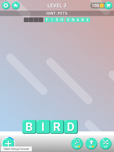 An exciting word game that captures from the first levels. You need to connect the correct chains to get words with a given topic.