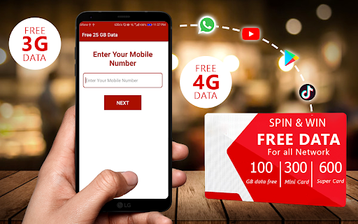 In this spin and scratch card and win 100 GB Free data internet 3g 4g data and also win call packages and SMS packages and easy load for all network in Pakistan, India, Bangladesh, Saudi Arabia and UAE. Free internet data 1GB up to 25GB for all networks. 100 load up to 1000 load for all networks in all counties.