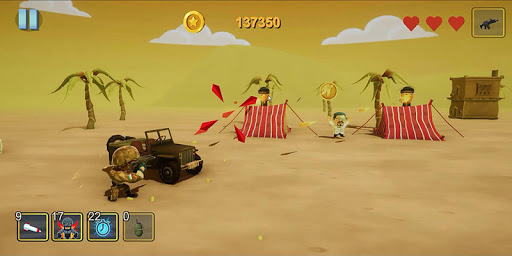 At first, your soldier will start fighting enemies with a simple weapon and simple clothing, but the more steps you take and increase your coin reserves, the more you can buy weapons and clothing. The game store includes 8 weapons models with different destructive powers, which have different prices depending on their capabilities. More than 7 models of clothes and hats have been made for the main character of the story, which you can use for variety.