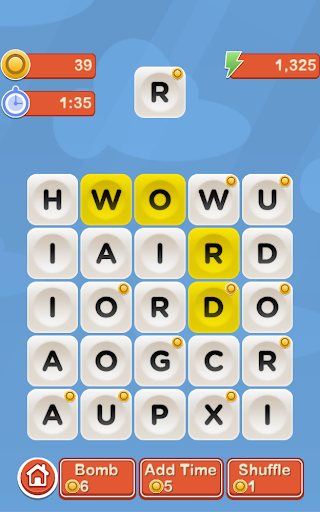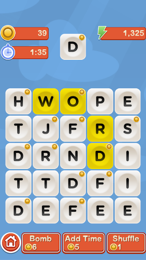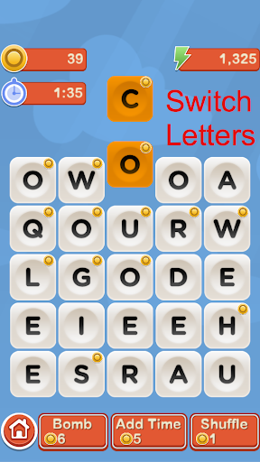 • Forming a word gives you score, more time, and possibly coins.