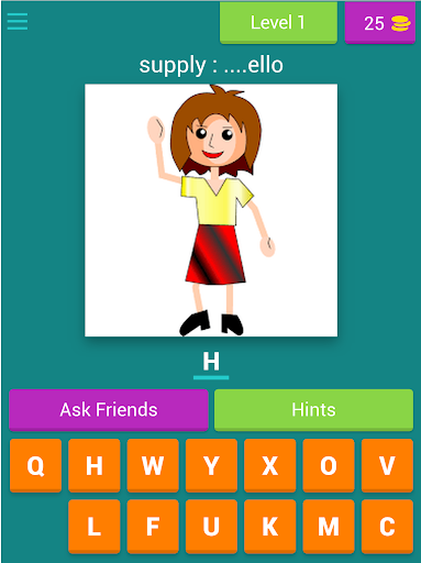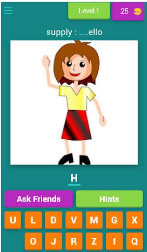 The idea of this application depends on the words in the Connect curriculum and the student in this application guesses the word for the image in front of the screen and supply the missing letter and goes to the next stage.