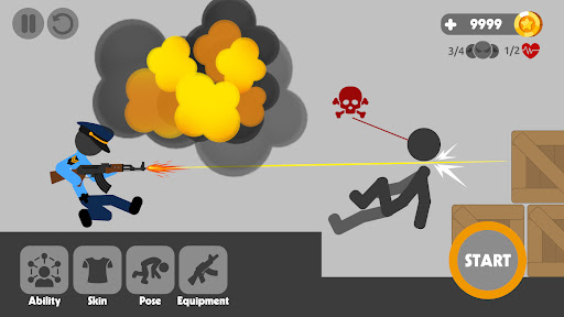 Elevate your stickman's coolness by outfitting them with a variety of skins and outfits.