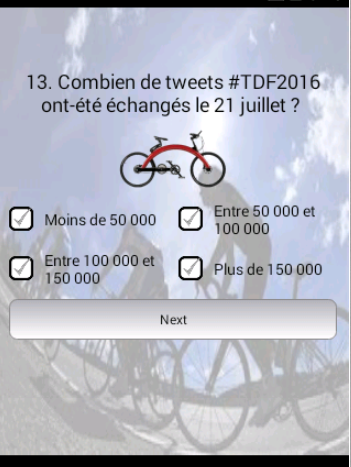 Le Quiz sur le Tour de France 2017 est le 7e quiz sur le cyclisme disponible sur l'application. D'autres suivent ...