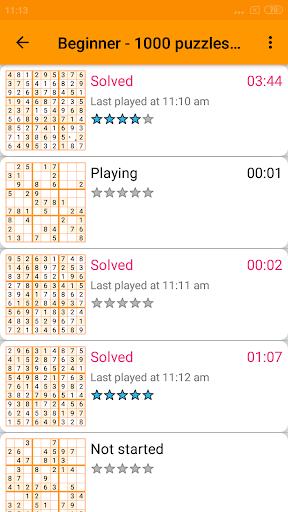 Try Beginner level for complete beginners. Choose Student and Master sudoku levels to improve your skills. Try expert sudoku is for advanced players. It will give your mind a real workout!