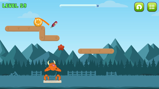 Snack Monster – 2D brain it on physics game where you should feed a hungry pet monster. Your task is to draw lines and deliver the snacks and candies to the glass belly of pet monster and make him happy. Be aware of bombs and spikes, cut rope on your path, brain it on your imagination and pass all 100 levels! Like in sandbox game you can make physics experiments to complete level.