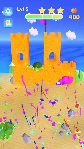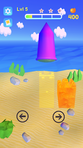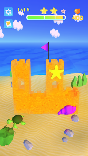 Build your own sand castle using different appliances. Start by collecting sand in a bucket, find the best mold and use a sand shovel to put the tower on the ground.