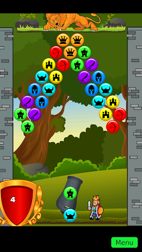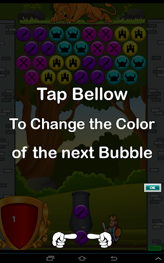 Shoot your colored bubbles at groups of three or more of the same and watch them explode away. Aim high to break off a whole branch of colors below to make sure you get rid of as many as possible. If you miss too many shots you may end up losing your kingdom! Are there bubbles in a hard to reach spot? No problem. Take aim and bounce your bubble off the wall to get those tricky to make shots. Color not the one you want? Tap the crossbow to change them.