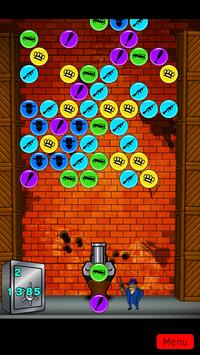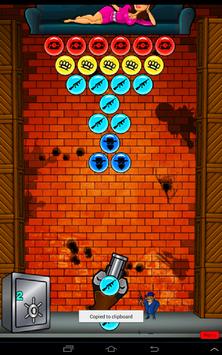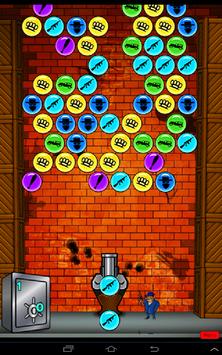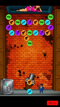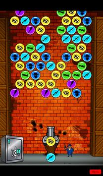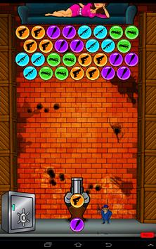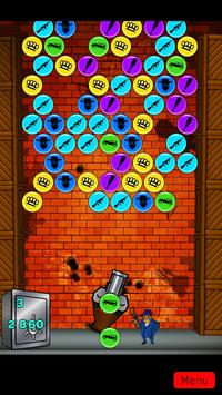 Use the special, old school mafia bubble shooter caliber cannon to shoot and match 3 or more bubbles together for them to completely pop, retrieving your hidden merchandise inside the bubbles, far from the eye of the law!