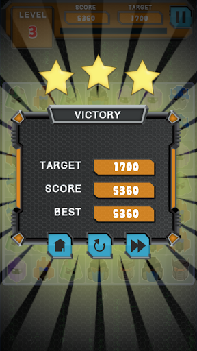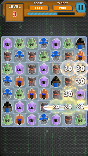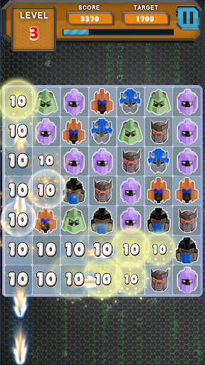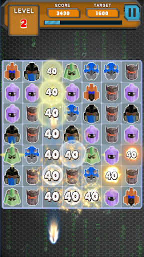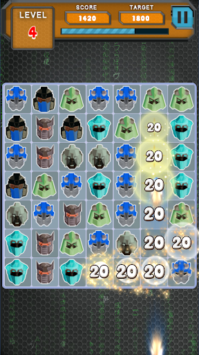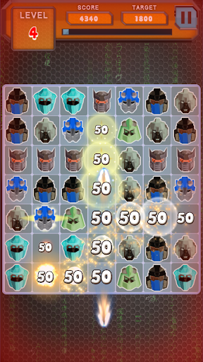 Match the deadly robots faces in each level to clear them out. Achieve this by swiping in any direction including diagonals to match them all. The greater the group you make, the bigger the score. Hurry as you play though because you only have so much time to make the target score in each level. How high your score reaches directly impact the number of stars you get on each level so even after you've beaten them all you can go through and replay them to master them all.