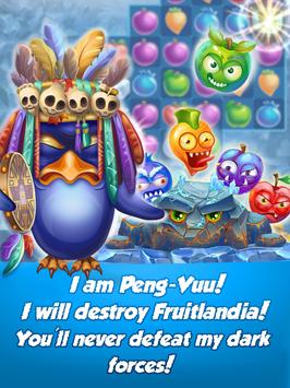 Using an enhanced Classic match 3 play system with all your favorite power ups you battle to save Fruitlandia from Peng-Vuu and his evil minions he has possessed. Starting with two of the fairies on your side you try to find and catch Peng-Vuu to remove his evil spell over all Fruitlandia. With numerous different play modes, level types, and blockers you try to successfully navigate through all the levels to catch him, but his is quick and sly! He will not be caught easily! Can you help the fairies and save Fruitlandia? Are you the one?