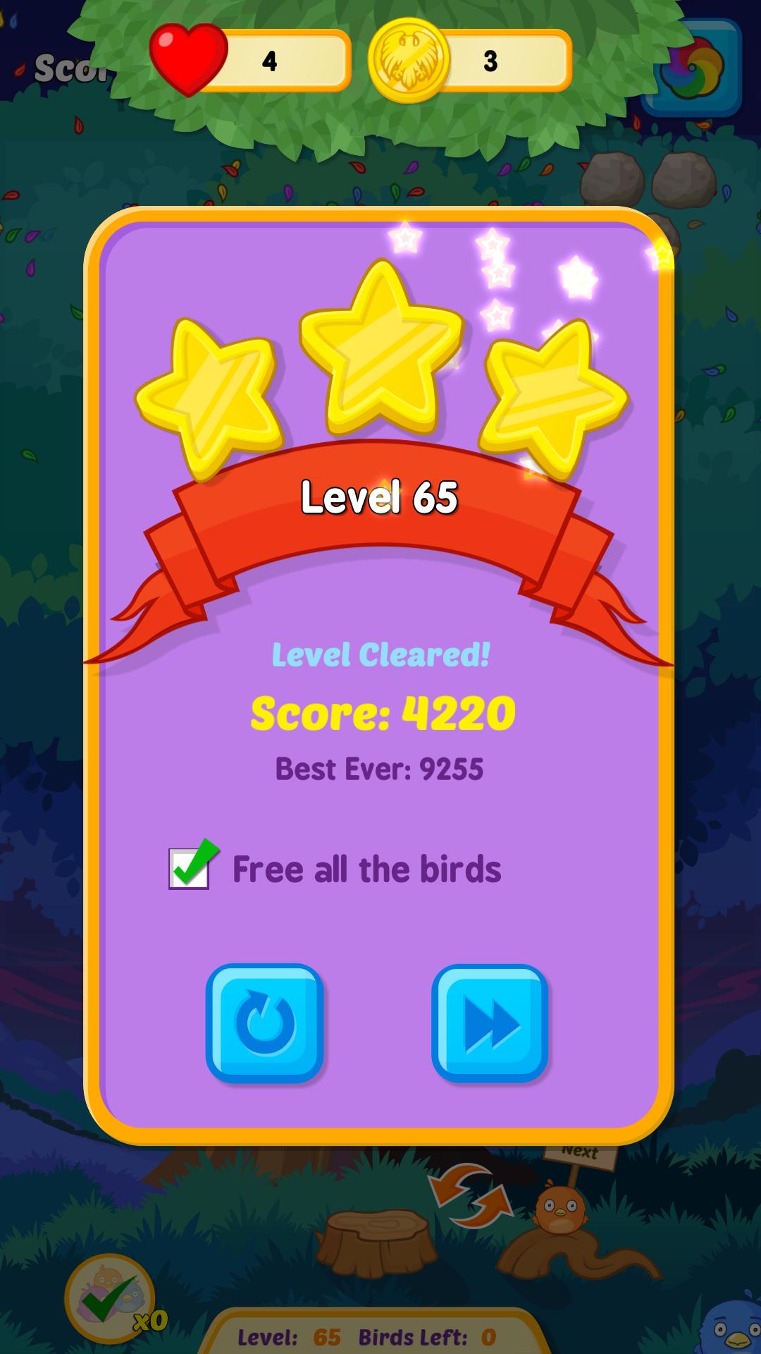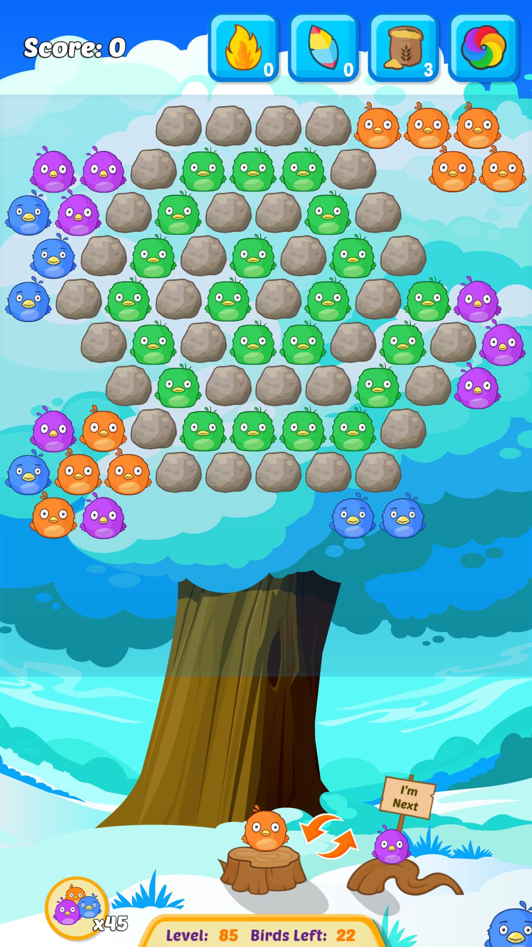 You start each level in the game with a fixed amount of bubble birds in the shooter, and you must achieve the level goals before you run out of bubble birds. The game features special bubble birds, like the chubby, parrot or the firebird. When you use a special bubble bird, it is placed in the shooter - if you want to put it back in stock just tap it in the shooter. Bubble on!