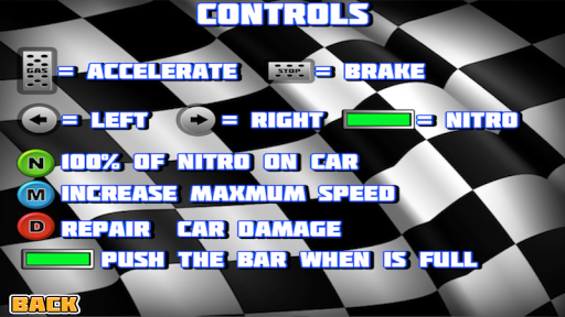 The gameplay is very simple and fun, you drive a mini nitro mini car, when you driving collect all the power-ups that you see in to the track, choose the perfect racing drive line, avoid the obstacles and surpasses all other cars to win and unlock all 8 track levels! Have fun with this awesome game!