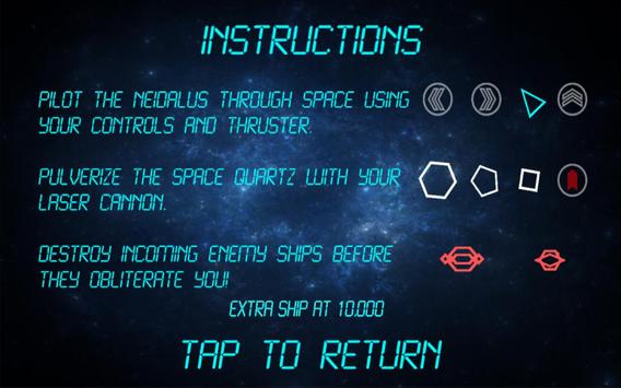 Pilot the Neidalus through space using your control and thruster. Pulverize the Space Quartz with your laser cannon. Destroy incoming enemy ships before they obliterate you!