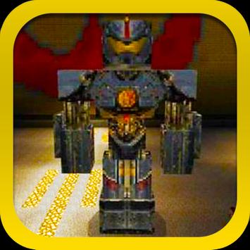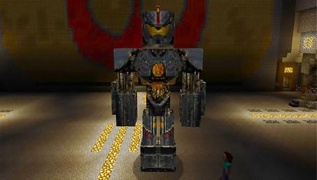 takes from the mob 20-30 units of health. Moreover, when the robot is not on guard of your survival, then it starts shooting fireballs at enemies, from a long distance. Moreover, Mega Mech itself is fireproof. Here you can saddle the machine like in the science fiction film Pacific Rim. In order to revive the robot you will need the iron blocks and pumpkin. You need to create a design that exactly repeats the robotmachine, but with a pumpkin on your head. When the pumpkin is on top, consider that Mega Mech is activated. You can not only diversify your adventures and make survival more secure, but you can also use the robotmachine in the mod of MCPE as a storage room, in which 27 different items are placed. Get a personal robotmachine in the sandbox of Minecraft, download MCPE Mod Mega Mech!