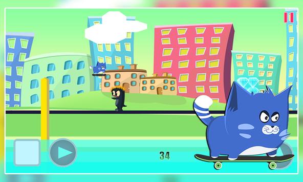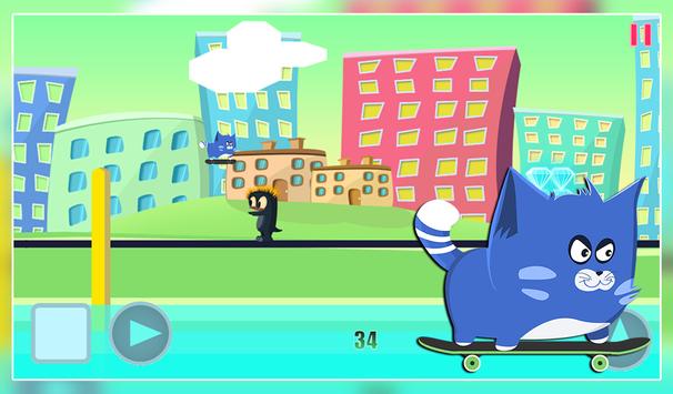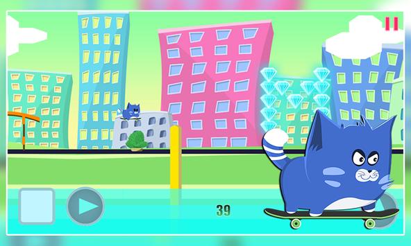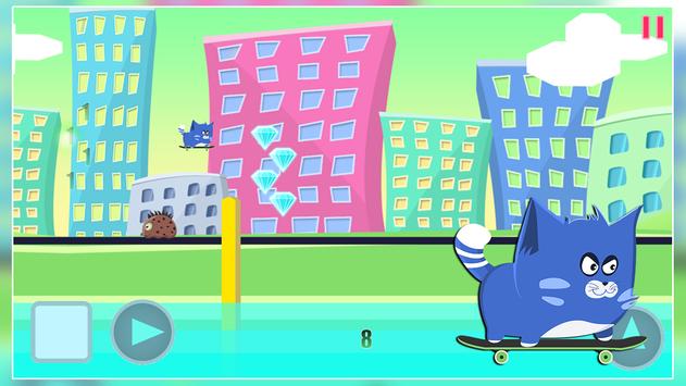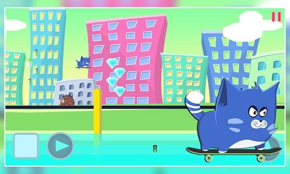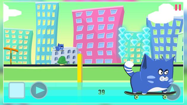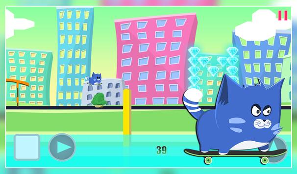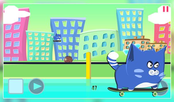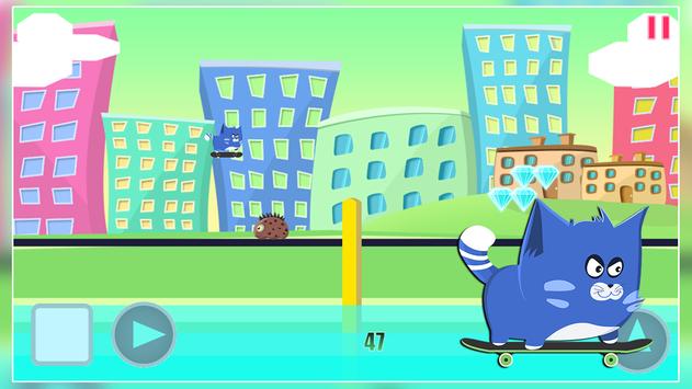 Have you ever wonder what it would be like to be a kitty doing skateboard in a huge city ? Here's your chance to know the feel, little kitty love his skateboard, he love to go fast on it and city the entire town. Unfortunately danger lies everywhere you go, dangerous creatures roams the streets so avoid them, they also left cactus to make your life more difficult, jump over them as well.