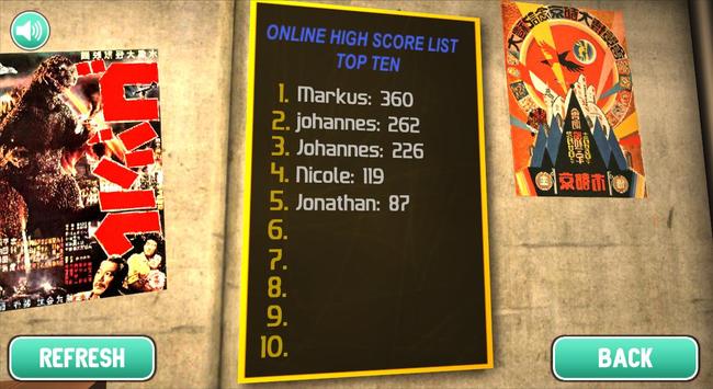 If you reach a highscore, you can post it on the online highscorelist! After posting your personal highscroe, it will be drawn on the list immediately. (Please chooese an unique nickname)
