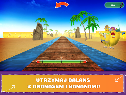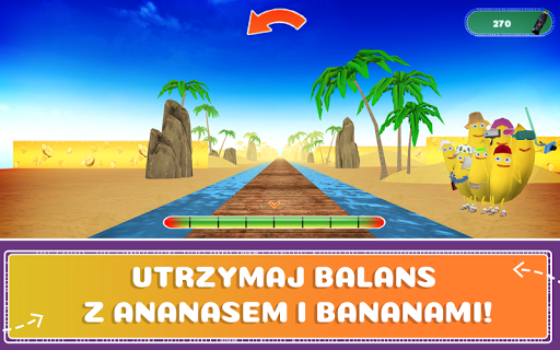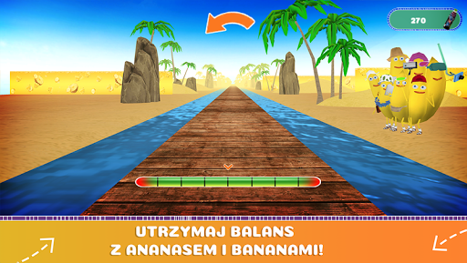 3. Utrzymaj równowagę podczas chodzenia po belce w asyście Ananasa i Bananów! Tutaj liczy się zręczność, bo po drodze czeka wiele przeszkód, które mogą wytrącić Cię z równowagi!