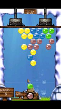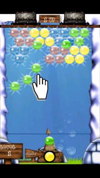 Knock the bubbles down by making clusters of three or more bubbles of the same color. Try to clear all the bubbles early before bubbles reach ground. The bubble will rebound off of the wall, since it only sticks to the ceiling or other bubbles it collides with.