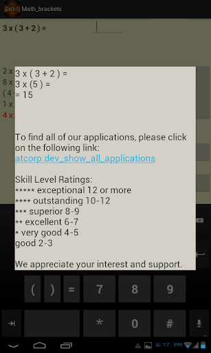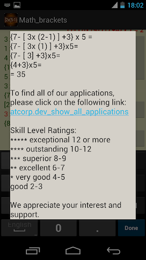 All calculations will be saved in a file labeled "brackets.htm" in the "math"