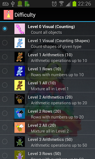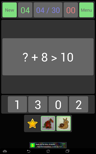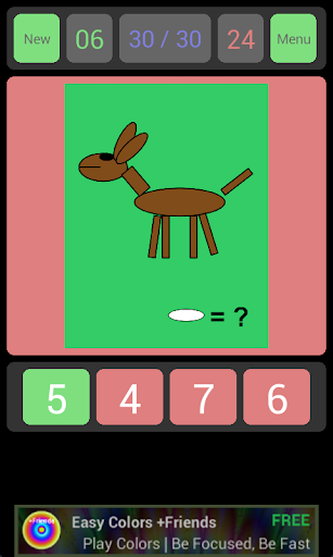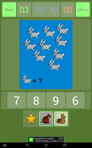 Do you search for offline math games for kids or you are math problem solver? Give it a try! This is math game with levels for kindergarten, preschool, 1 grade, 2 grade, 3 grade, 4 grade and more. Inspired by preparations for math exams and tests with our kids into the area of common core math, we created an interactive offline game for math problem solvers. The questions cover different areas: Visual counting - animals, objects, shapes; Arithmetic - addition, subtraction, multiplication, division; Equations and Inequalities; Number series. It has different levels - numbers up to 10, 20, 50, 100, 1000. How to play? - Make tests, answer questions, improve your response time.