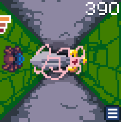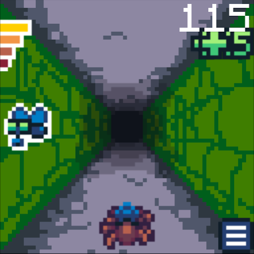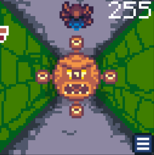 Obstacles and baddies are randomly generated and must be avoided by navigating the floor, walls and ceiling. Avoiding obstacles adds to your score. Getting hit takes away score points and health. Earn trophies and unlock the coveted golden armor! Can you survive the dungeon long enough to make top score?