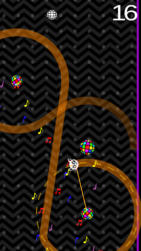 One touch anywhere on your display will establish a mechanical connection between Disco Cat and any Disco ball. Keep touching to stay connected with the disco ball.