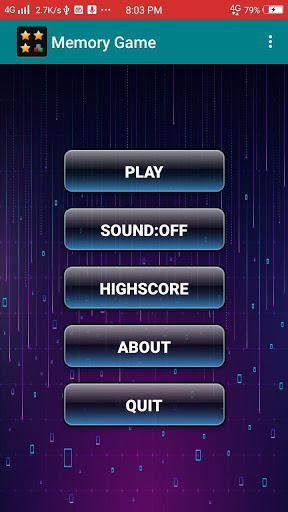 Memory game is picture match game in this game you need to match picture by tap on star icon. if your picture will match with next picture then that match pair will be removed from list so by do the match all remaining pictures you can complete this game. After complete your game you can save your score with your name & time taken for complete this game. in this memory game you have to remember which icon is hidden behind star so you can get easily pair of picture. by playing this game your brain power , concentration, accuracy, attention, the speed of thinking and logic skills will be improve.
