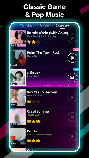 Embark on a musical journey with "Piano Tiles Viral - Trending Song," a captivating game offering a diverse selection of music styles, including Pop, Classic Piano, T-pop, K-pop, J-pop, EDM, Hip-Hop, R&B, and more. Whether you're a kid or an adult, everyone can enjoy the relaxation and trendy tunes in this piano star tap music tiles game.