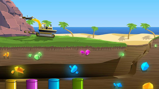 On display there are four containers, each with a specific color, green, blue, yellow and purple. The bulldozer is pulling out of the mine gems with the same colors as the containers, you must open and close each container with your finger, according to the gem you're going to collect. The more gems that enter the correct container more points you earn. Every minute you will be alerted, as the machine accelerates the process of excavation and gems fall more rapidly through the cave, adding more difficulty to the game.