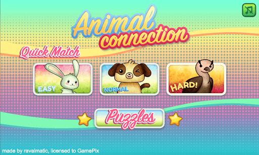Test your pattern detection skills in this cute puzzle. Animal Connection features 3 different game modes and 30 puzzle stages: match all cute animals and clear the board! Animal Connection