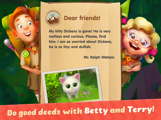 Do something useful: complete levels in the genre of "match-3", find the missing animals and return them to their owners or give them to an animal shelter to be looked after by the kind workers of the shelter.