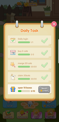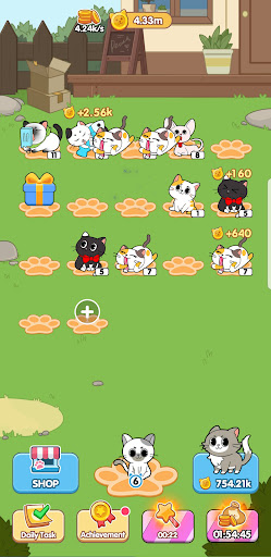 Just use your finger to merge two cats of the same level to unlock a new cat, and you will get rewards.