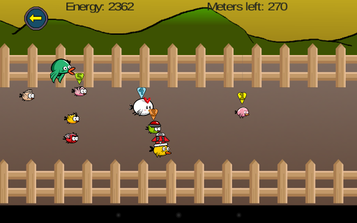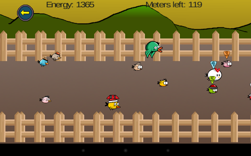 You can race faster simply by tapping the screen; however, the faster you go the faster you get tired. Find a good race strategy by balancing speed and energy and flapping to the end. Make sure you have enough energy to finish the bird race.