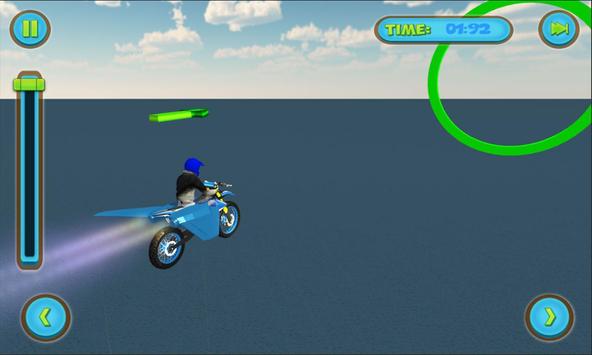 Fly through the rings and do it within the given time limit. Flying a flying motocross was never this much fun. Skill up your motocross bike simulator driving skills and flying games skills! With the 20 flying games missions you will be playing for hours!