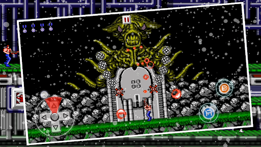 With 2 super warriors Rambo and Bill, you are equipped with the most advanced weapons: Flamethrowers, S Bullets, Cluster Bullets, Rapid Fire Bullets... fighting through mazes, underground security system land and jungle surrounded by giant waterfall and alien cannons. And if you survive, the earth will survive!