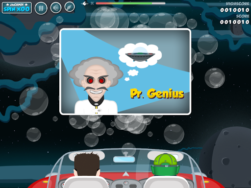 Go to the pursuit of "Pr. Genius" and his aliens army! Be careful he will try everything to stop you... -"One touch" game - 5 characters - Jackpot inclued - In - app purchases - Special vehicles - Tweet score...