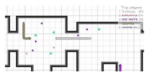 Zlither is a classic snake game - play with up to 100 players on one map at the same time!