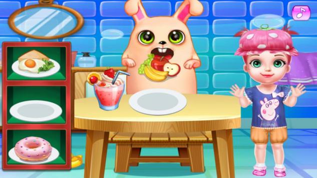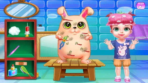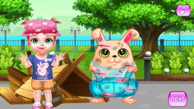 In this game, you need to help this little baby take care of her bunny. Her bunny was injured when he is playing, so be his doctor and take a surgery for him. After that, you can take a shower for him to make him become clean and tiny again. When he is hungry, feed him some foods. Finally, choose some beautiful dresses for him. They are so cute, there is no reason you don’t come here and enjoy your time with them. Have fun!