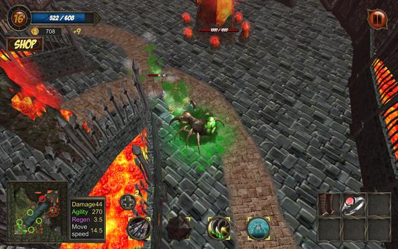 Hello, spider king. Your power is great. Deadly poison hits enemies. A tough web entangle enemies. Feet leaving the toxic traces. But you're a hero of the village. You use your strength to protect this place. While light of blue crystal is on - we are alive and not defeated. The forces of hell are killing our people, burn our forests, the earth groans under their steps. Save us, the hero. Defeat the horde.