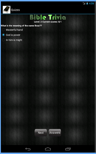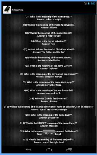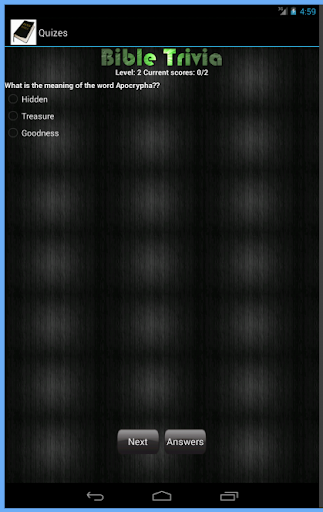 The app contains a collection of gospel trivia questions picked from both the Old and New Testament on the teachings of God, Jesus, David and many other biblical prophets.