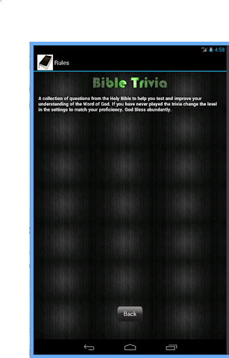 The app also as questions on bible related events like the Christmas and Easter holidays.