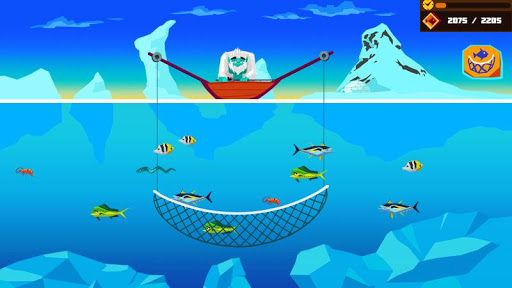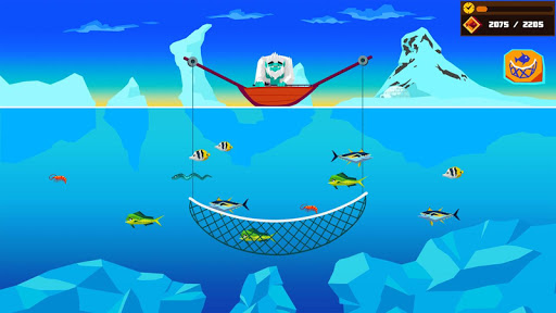 The objective of this free addictive fisher game is to play through a very large selection of levels and catch as many fishes as possible to reach the objective of the level before the time runs out. You can buy some power-ups with the coins earned to help you in your mission. Keep in mind that each fish has different value and you will get better rewards if you catch bigger fishes, but, bigger fishes are harder to pull, so, you should be able to manage your time and see which fish you will catch.