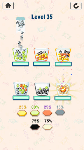 This sort candy puzzle game is different from Block brain sort puzzle or water sort puzzle black game. In this sort candy puzzle game bead classic sort game you will find different kinds of candy, balls and different difficulties according to the level.