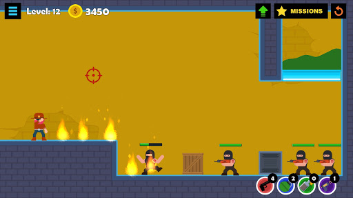 So, your mission is simple - kill all victims on the board. You can kill them by hitting your gun or any other object.