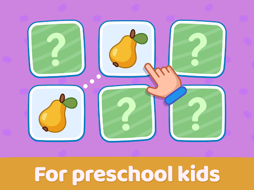 Memory games: Find two matching cards. This game is a simple version of the memory game and is suitable for foddlers, two years and up.