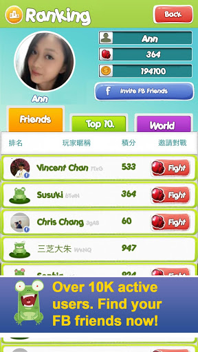 By logging in Facebook, your record is saved so that you can use the Facebook account on phones and tablets. Facebook friends who also play FrogU will be added automatically into your game friend list. A lot easier to invite your friends!