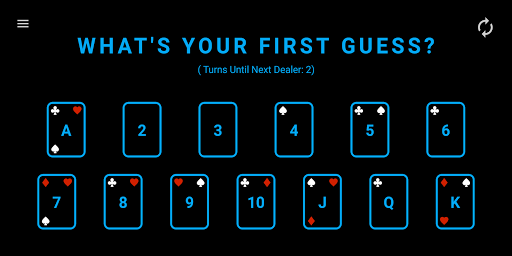- the player to the left of the "dealer" gets two guesses as to what the top card is