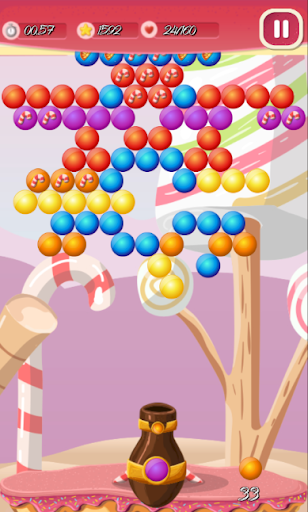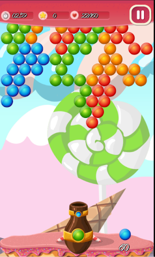 Travel with the Funny Donut in the valley of sweets and shoot bubbles with it!