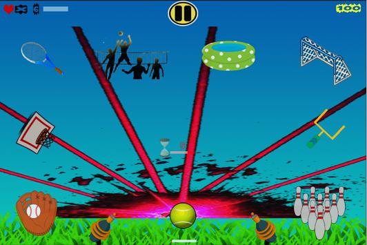Futbol, basketbol, beyzbol, tennis, bowling... Ne ararsan bir arada ! Hatta dahası var. Dikenli toplar, el bombaları, yarasalar, kafanıza atılan su bidonları,kayalar, satırlar ve meşaleler ! Ama korkmayın, sizinde lazer silahınız var ! İlerledikçe azalan atış süreniz ve hızlanan yabancı maddeler ile mücadeleye girerek alabildiğiniz en yüksek puanı almaya çalışın !