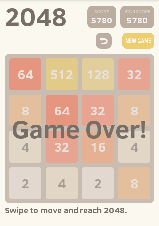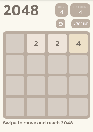 Classic 2048 is played on a gray 4×4 grid. As you swipe in one of four directions (up, bottom, left, right) all the tiles moves to the same direction. When two tiles with the same number touch, they merge into one and adds together (2 2 = 4, 4 4=8 and so on). When 2048 tile is created, the player wins!